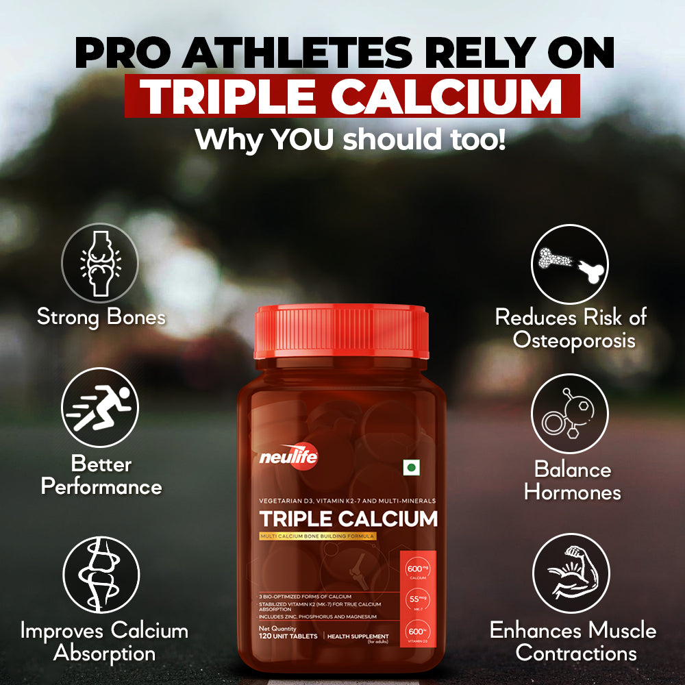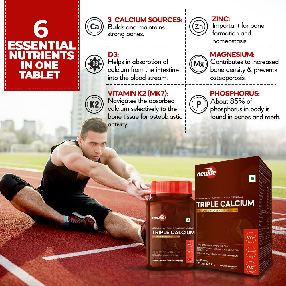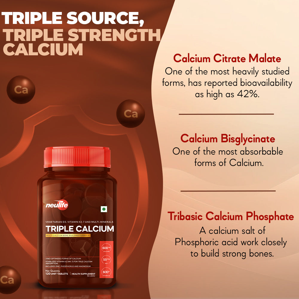 Triple-Calcium contains 3 highly bioavailable Calcium forms, namely Calcium Citrate Malate (CCM), Tribasic Calcium Phosphate and Chelated Calcium Bisglycinate, which together maximize osteoblastic activity (building new bone mass).