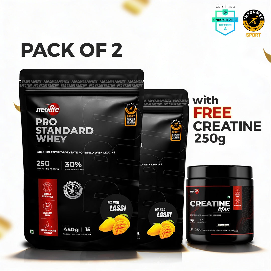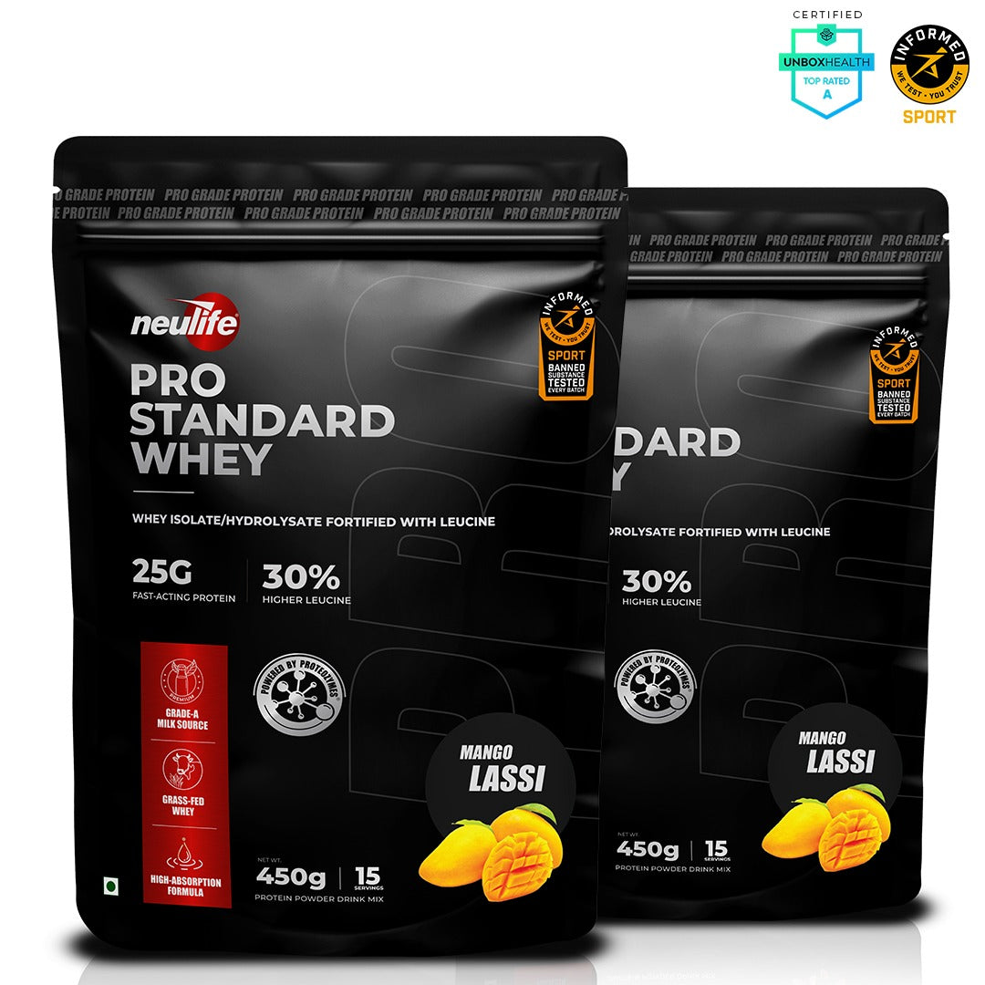 Grass-fed whey comes from grass-fed cows. These animals are raised on organic pastures and eat natural, plant-based diets, not the corn or soy diets filling the troughs of conventional farms. Because of this, grass-fed whey protein has higher levels of immune-boosting, bioactive compounds. Not only is Neulife’s PRO-STANDARD WHEY Black tested for over a 150 banned substances, hormones and antibiotics by World Leader in Testing- LGC, U.K under their INFORMED SPORT program, our WHEY is one of the few, which is Grade-A GRASS-FED Quality and carries a Grass-Fed certification from Arla Ingredients (Denmark)” the world’s largest producer of ultra-premium raw whey proteins.