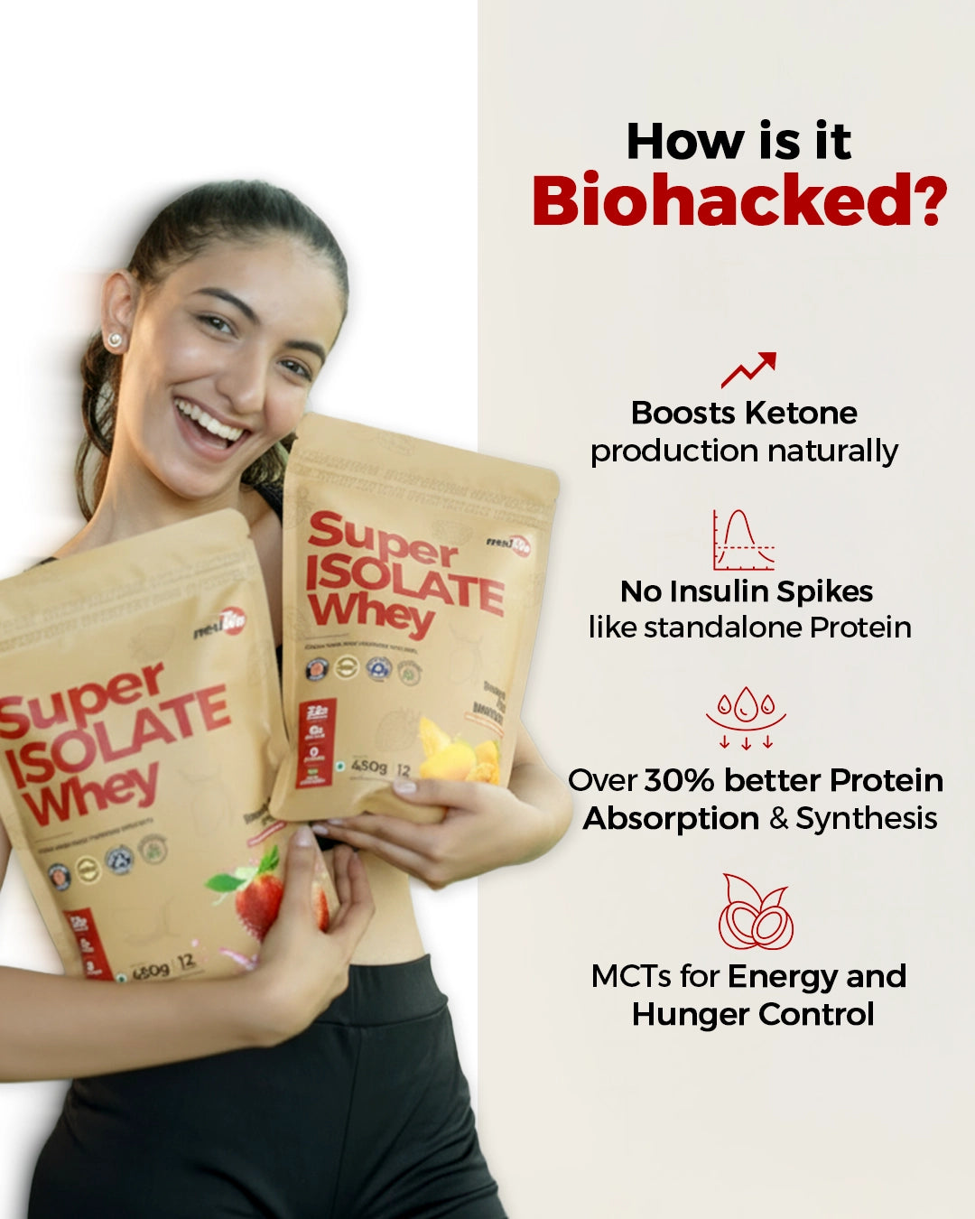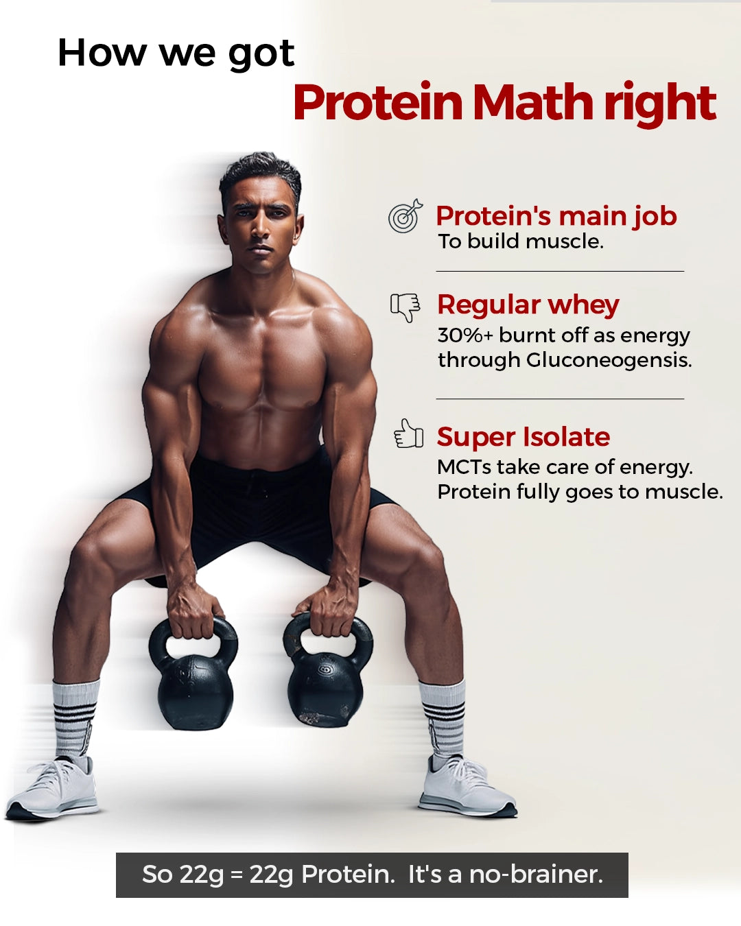 Protein efficiency is the quantum of ‘absorbed’ protein which actually reaches the site of muscle to perform its main function of muscle protein synthesis (MPS). By sparing the Protein from being oxidized for energy via its MCT enriched Fatty Protein formula, Super Isolate improves the efficiency of your absorbed protein by at least 30%, especially for intermittent fasters and low carb athletes.