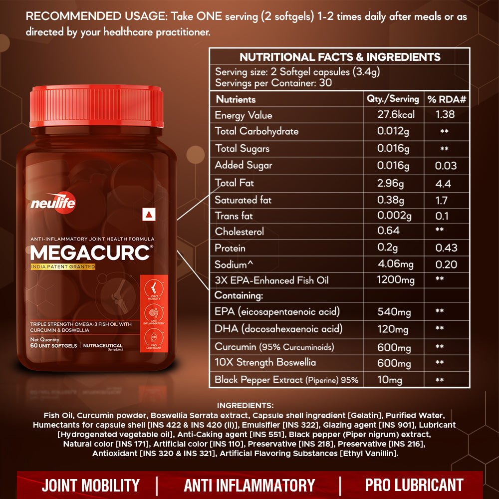 MEGACURC Patented Advanced Joint Support with Triple-Strength Fish Oil, Curcumin & Boswellia