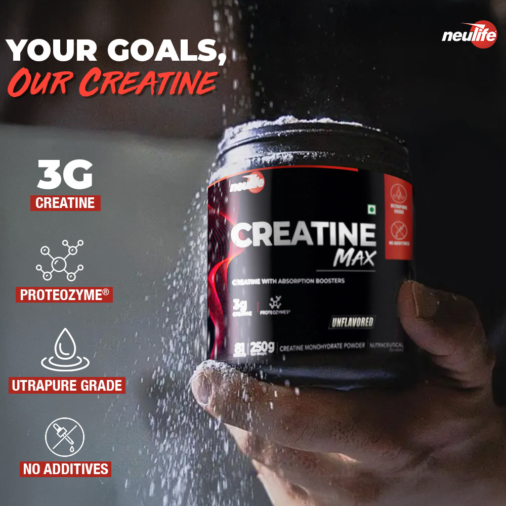 Neulife’s Creatine-Max powers your workouts with explosive energy by recycling ATP, your body’s primary fuel for high-intensity performance.