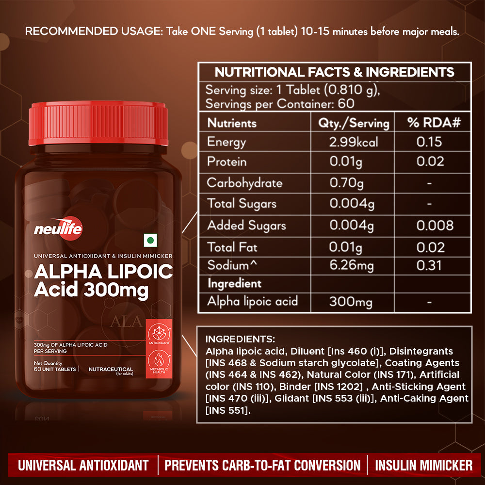 POWERFUL ANTIOXIDANT: Alpha-lipoic Acid (ALA) is renowned as a universal antioxidant, neutralizing free radicals and protecting your cells from oxidative stress, ensuring overall well-being.