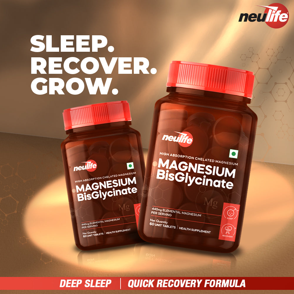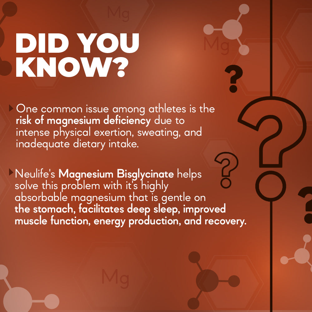 Magnesium plays a crucial role in muscle contractions, nervous system health and sleep support. Neulife's High Absorption Chelated Magnesium BisGlycinate provides a highly bioavailable source of Magnesium for daily health.