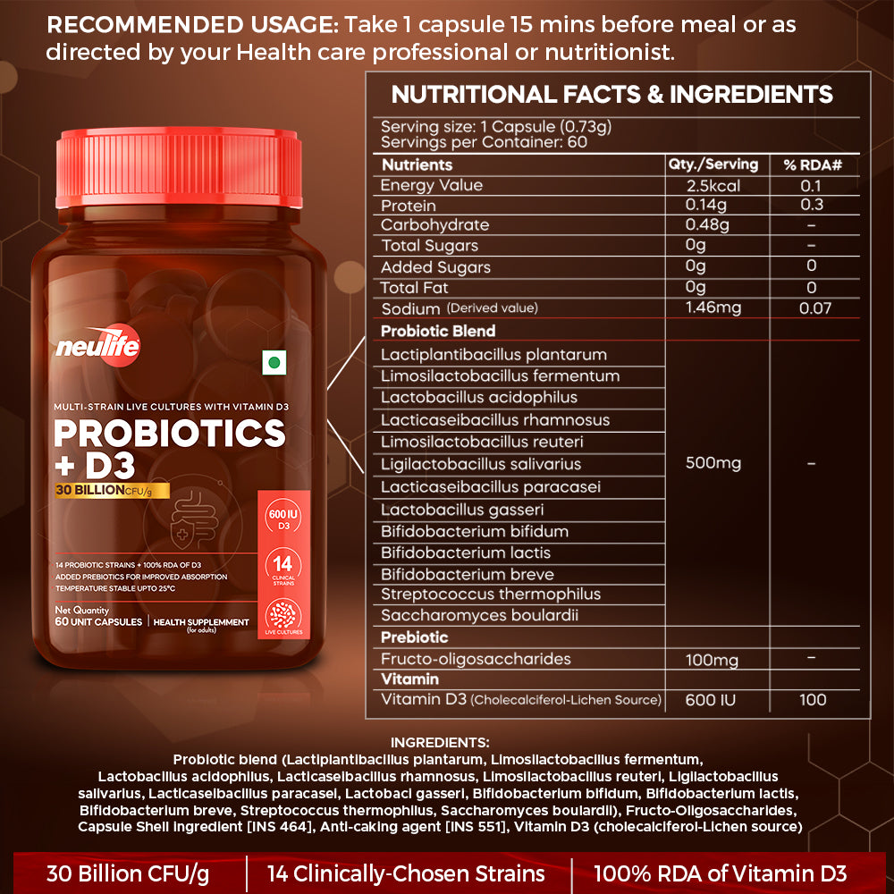 Our next-gen, broad-spectrum probiotic is now temperature-stable and fortified with 100% RDA of Vegan Vitamin D3 — for total gut, bone, and immune support.30 Billion CFU/g – Packed with live cultures that actually help your gut.