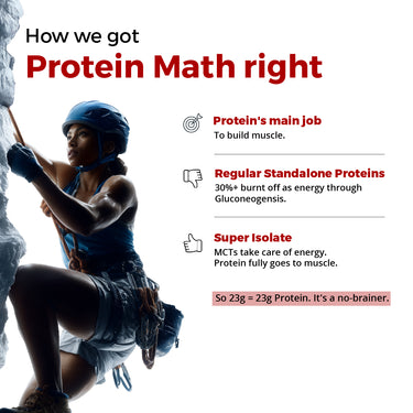 Protein efficiency is the % of 'absorbed protein' which actually reaches the site of muscle tissue to perform its main function of muscle protein synthesis (MPS). By sparing the Protein from being oxidized for energy via its MCT enriched Fatty Protein formula, Super Isolate improves the efficiency of your absorbed protein by at least 30%, especially for intermittent fasters and low carb athletes.